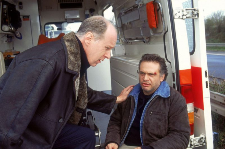 Nachdem er Semir (Erdogan Atalay, li.) und Tom (Rene Steinke, re.) angerufen hat, muss Bonrath (Gottfried Vollmer) mitansehen, wie sein Freund abgeführt wird. +++ Die Verwendung des sendungsbezogenen Materials ist nur mit dem Hinweis und Verlinkung auf RTL+ gestattet. +++