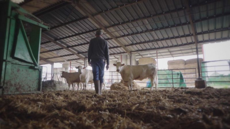 Ein Bauer mit seinen Rindern +++ Die Verwendung des sendungsbezogenen Materials ist nur mit dem Hinweis und Verlinkung auf RTL+ gestattet. +++