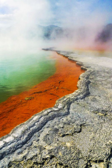 Der Champagne Pool ist mit 65 Meter Durchmesser und einer Tiefe von 62 Metern eine der größten Thermalquellen Neuseelands. Seinen Namen trägt das über 900 Jahre alte Becken wegen der kontinuierlich zur Wasseroberfläche aufsteigenden Gasblasen.