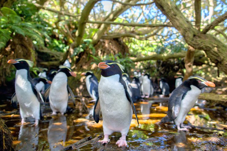 Nur wenige Pinguinarten auf der Welt brüten im Wald. Snaresinselpinguine laufen bis zu tausend Meter landeinwärts, um ihre Jungen zu füttern.