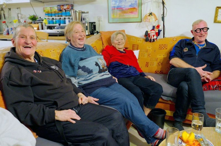 Im Berliner "Lebensort Vielfalt" geht es nachbarschaftlich zu. Regelmäßig treffen sich die Bewohnerinnen und Bewohner Annet, Monika, Elke und Andreas (v.l.), um einander Gesellschaft zu leisten.