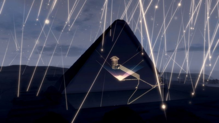 Die drei Pyramiden von Gizeh im Myonen-Schauer.