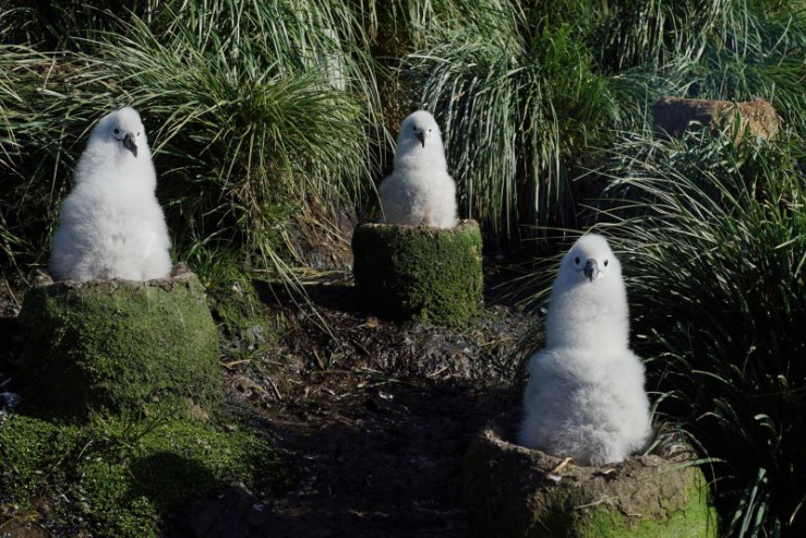 Die Küken des Graukopfalbatros sitzen auf hohen Nestern aus Schlamm und Gras. Nur, wenn sich die Kleinen exakt an diesen Platz befinden, erkennen die Eltern sie und kümmern sich.