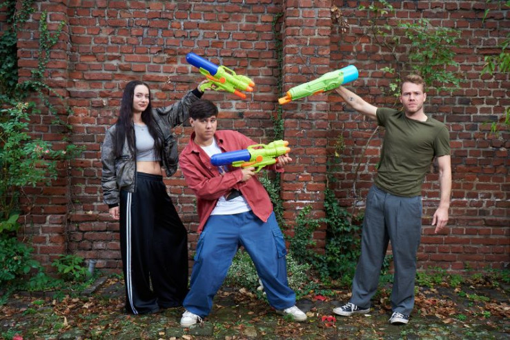 Anna (Kayla Shyx, l.), Ernst (Diyar Ilhan, M.) und Julian (Ben Münchow, r.) erleben das Chaos ihres Lebens - schräg, lustig und emotional wie nie.