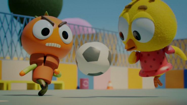 Karla (M.) will Spiky (l.) und Heinz (r.) zeigen, dass Mädchen die eindeutig besseren Fußballspielerinnen sind.