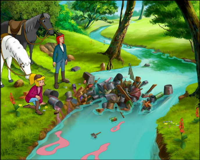 Als Bibi und Tina nach dem Auslöser der Vergiftung suchen, entdecken sie im Mühlenbach eine wilde Müllkippe. Klar, dass dadurch das Wasser vergiftet wird. Amadeus und Sabrina haben davon getrunken. Nun wollen Bibi und Tina den Missetäter finden.