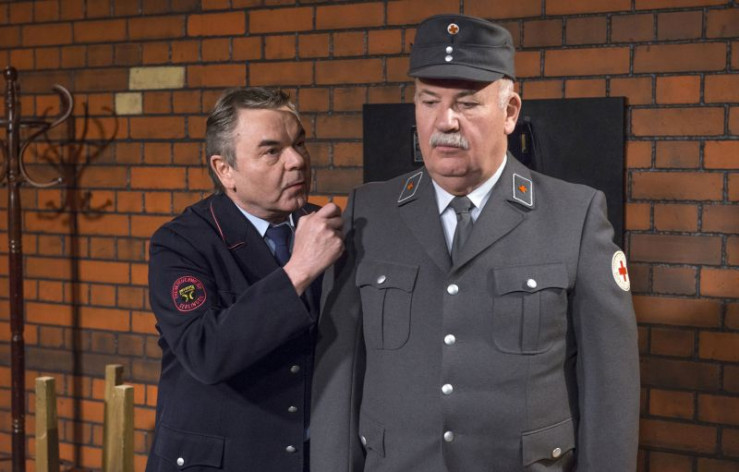 Anlässlich eines Porträts über "Hannes und der Bürgermeister" kommt das SWR Fernsehteam auch hinter die Kulissen des Theaters zum Feuerwehrmann Heinz und Sanitäter Eberhard . Das trifft Eberhard völlig unvorbereitet. Panik - innere Hemmungen und äußere Spannungen - sind die Folge. Zwischen den "Kämpfen" hinter der Bühne spielen "Hannes und der Bürgermeister" ihre Sketche.