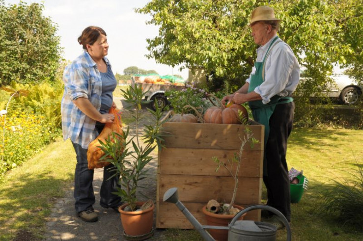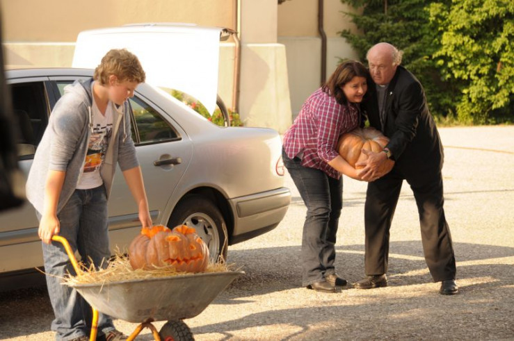 Beim Kürbis-Wettwiegen in Martlskirchen fürchtet Pfarrer Kurz nur Landfrau Monika als ernsthafte Konkurrentin.