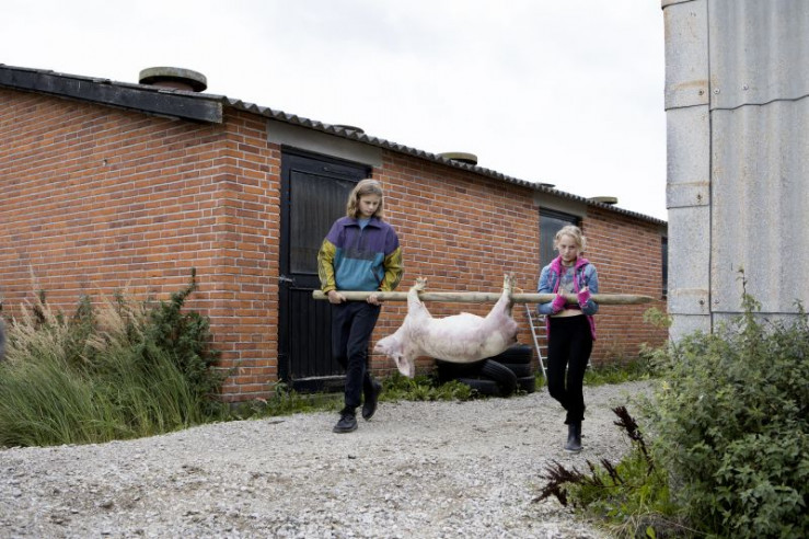 Dea und ihre Kinder beim Frühstück. Von links: Holly (Flora Ofelia Hofmann Lindahl), Dea (Christine Albeck Bßrge) und Theo (Noah Storm Otto).