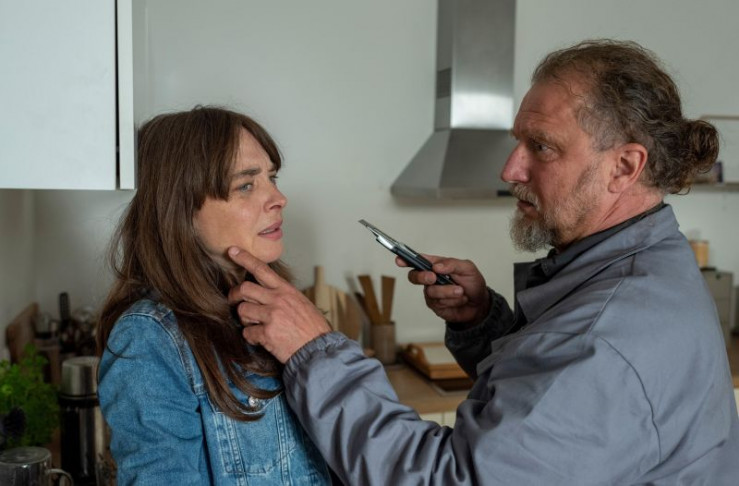 Lena Schühle (Catherine Bode, l.) erwartet in ihrer Wohnung eine böse Überraschung: Hausmeister Axel Rudolph (Matthias Komm, r.) will sich an ihr rächen.