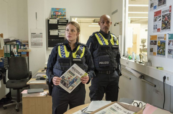 Die Verbandszeitschrift "Herzschlag Hamburg" führt Bente Hinrichs (Sinha Melina Gierke, l.) und Lukas Petersen (Patrick Abozen, r.) auf eine wichtige Spur.