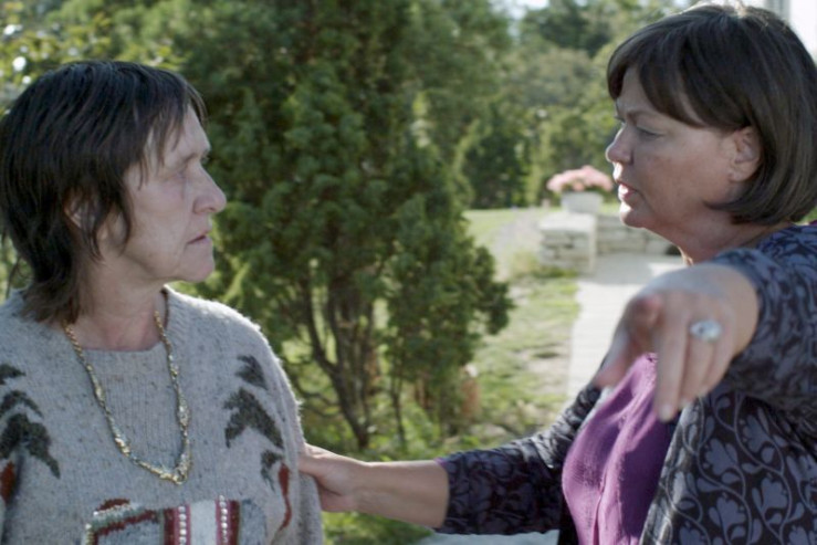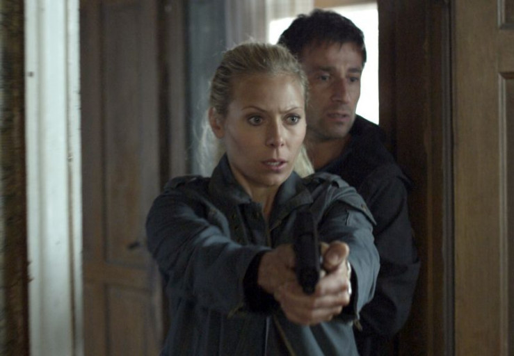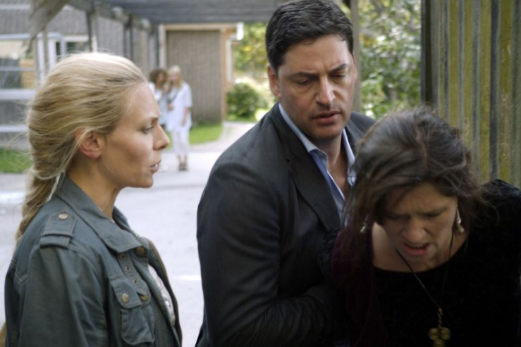 Maria Wern (Eva Röse, links) und ihr Kollege Patrik Hedlund (Reuben Sallmander) verhaften die verdächtige Anneli Berggren (Lena Carlsson).