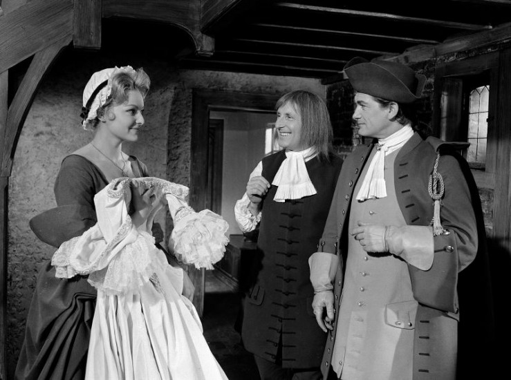 Henri de Lagardère (Jean Marais, l.) und sein Freund Passepoil (Bourvil, M.) finden Unterschlupf bei Don Miguel (Paul Cambo) in Toledo.