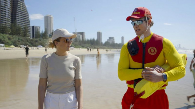 Lena Ganschow und Liveguard Tom Barret in Brisbane, Australien.