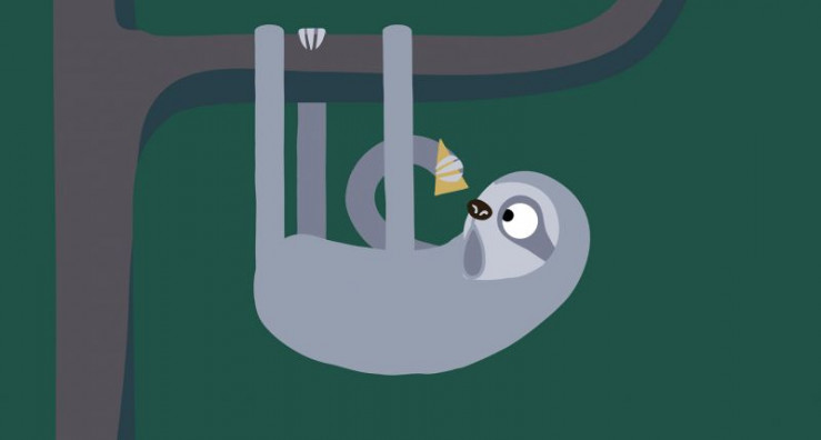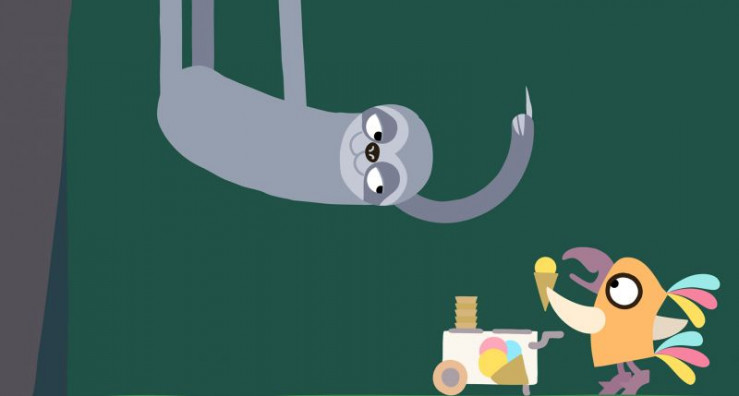 Das Faultier will ein Eis kaufen. Aber leider ist es viel zu langsam.
