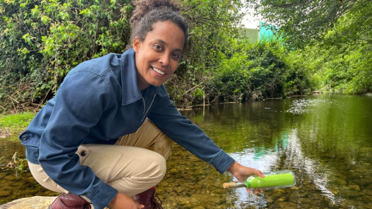 Pia verschickt eine Flaschenpost aus dem Korkeichenwald.