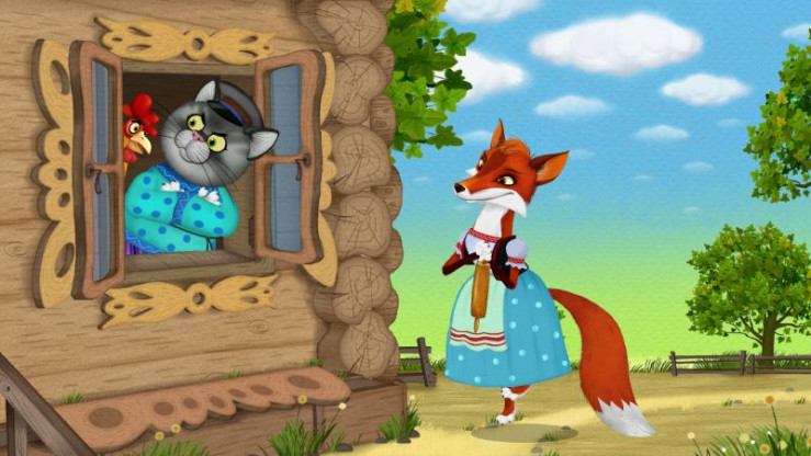 Die hinterhältige Füchsin will die Katze täuschen, um den Hahn zu fressen und ein Nudelholz zu ergaunern. Doch was auch immer die Füchsin anstellt, die Katze lässt sich nicht hinters Licht führen, und der Hahn bleibt unbedroht. Schließlich reicht es der Katze. Sie versteckt sich in einer Tasche und springt der erschreckten Füchsin ins Gesicht, als diese die Tasche öffnen will.