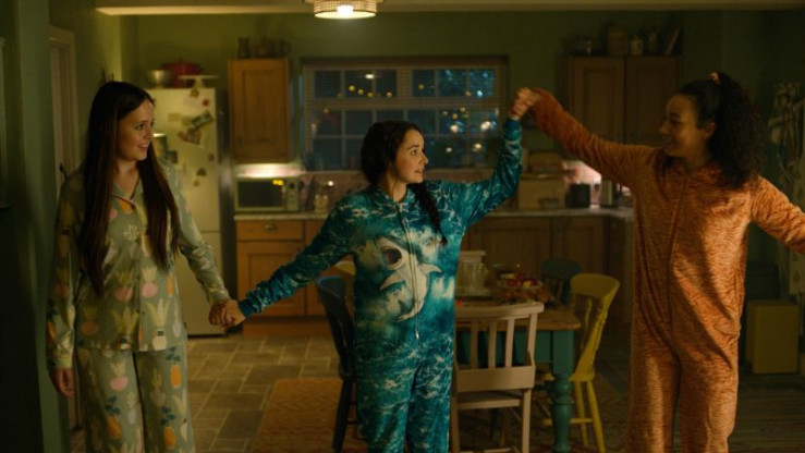 Addie (Lola Blue, M.) hat zum ersten Mal in ihrem Leben eine Übernachtungsparty. Eigentlich hatte sie nur ihre Freundin Audrey (Eve Midgley, r.) eingeladen. Aber ihre Mutter hat Jenna (Evie Elgie, l.), Addies früherer Freundin, auch noch Bescheid gegeben. © ZDF/Kind Of Productions Limited MMXXIII - Honorarfreie Verwendung gemäß AGB im redaktionellen Zusammenhang mit genannter Sendung bei Nennung "Bild: ZDF/Kind Of Productions Limited MMXXIII" einschließlich SocialMedia Einschließlich Social Media© ZDF/Kind Of Productions Limited MMXXIII - Honorarfreie Verwendung gemäß AGB im redaktionellen Zusammenhang mit genannter Sendung bei Nennung "Bild: ZDF/Kind Of Productions Limited MMXXIII" einschließlich SocialMedia Einschließlich Social Media