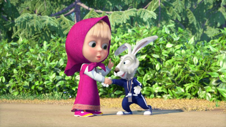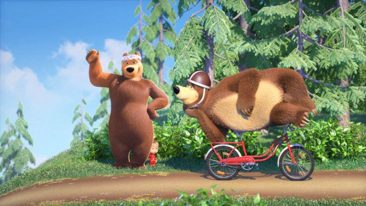 Der Bär, Mascha und die Bärin freuen sich über den Sieg.