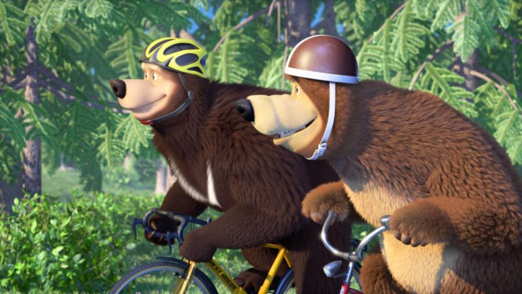 Der Bär und sein Rivale fahren Rad.