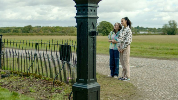 Ende gut, alles gut: Addie (Lola Blue, l.) und ihre Freundin Audrey (Eve Midgley, r.) betrachten die Gedenktafel, für die sie gekämpft haben, und die nun im Dorf aufgehängt wurde.