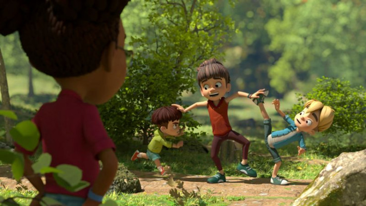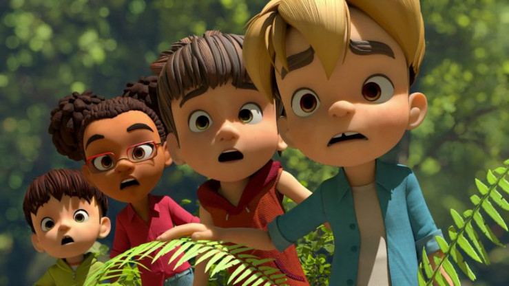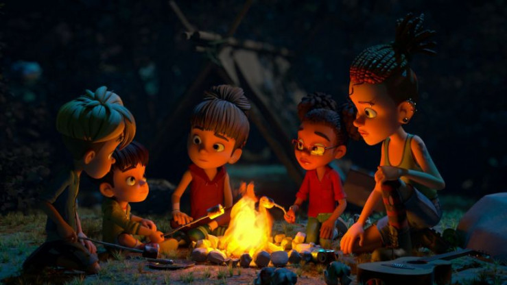 Bei ihrem Streifzug durch den Wald, lernen Raphael, Kleiner Fuß, Bohnenstange und Lina eine junge Spanierin kennen, die sie zum Lagerfeuer einlädt. © ZDF/La Station Animation - Honorarfreie Verwendung gemäß AGB im redaktionellen Zusammenhang mit genannter Sendung bei Nennung "Bild: ZDF/La Station Animation" einschließlich Social Media Einschließlich Social Media© ZDF/La Station Animation - Honorarfreie Verwendung gemäß AGB im redaktionellen Zusammenhang mit genannter Sendung bei Nennung "Bild: ZDF/La Station Animation" einschließlich Social Media Einschließlich Social Media