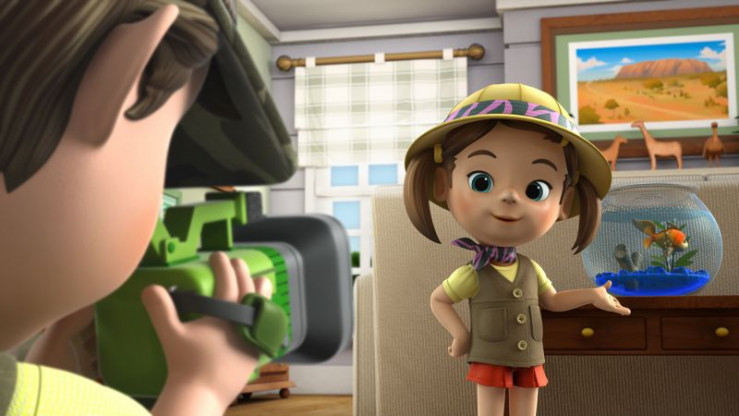 Joshua filmt Ruby bei der Vorstellung ihres Goldfisches. Ruby ist Tierreporterin. © KiKA/FunnyFlux/QianQi/EBS/CJ E&M - Honorarfreie Verwendung gemäß AGB im redaktionellen Zusammenhang mit genannter Sendung bei Nennung "Bild: KiKA/FunnyFlux/QianQi/EBS/CJ E&M". Andere Verwendung nur nach Absprache. KiKA Marketing & Kommunikation - bildredaktion@kika.de Telefon: +49.361.218-1826 Einschließlich Social Media© KiKA/FunnyFlux/QianQi/EBS/CJ E&M - Honorarfreie Verwendung gemäß AGB im redaktionellen Zusammenhang mit genannter Sendung bei Nennung "Bild: KiKA/FunnyFlux/QianQi/EBS/CJ E&M". Andere Verwendung nur nach Absprache. KiKA Marketing & Kommunikation - bildredaktion@kika.de Telefon: +49.361.218-1826 Einschließlich Social Media