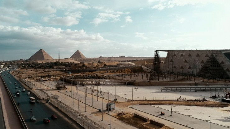 Das Grand Egyptian Museum mit Blick auf die Baustelle und die Pyramiden.