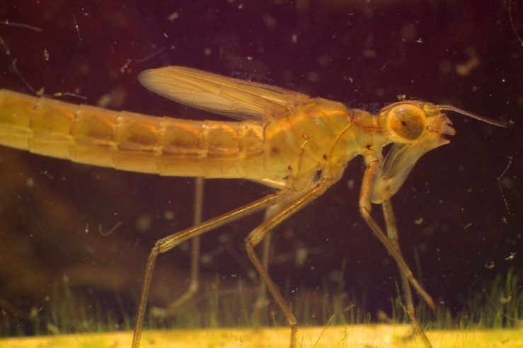 Libellenlarve unter Wasser.