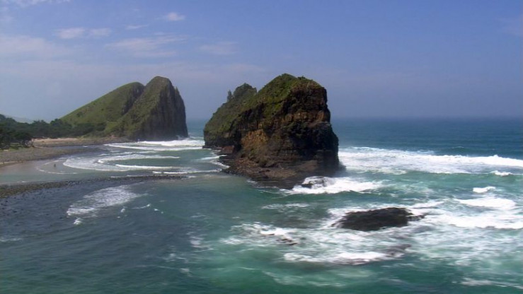 Dieser Felsen an der Südküste ist bekannt als "Hole in the Wall", weil er in der Mitte ein Loch hat.
