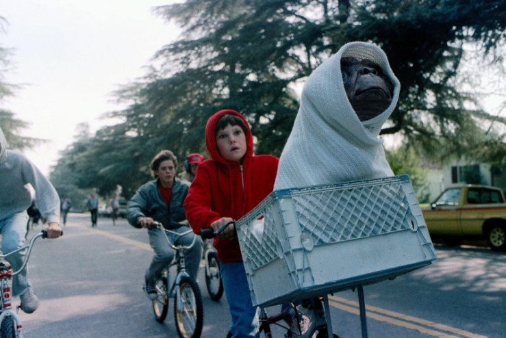 Elliot (Henry Thomas) will seinen ungewöhnlichen Freund E.T. vor der Welt der Erwachsenen beschützen. Auf seiner Fahrradtour versteckt er ihn dabei unter einem Laken.