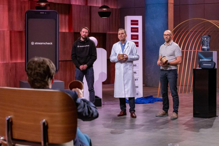 V.l.: Sebastian Janus, Stefan Siemer und Sebastian Heidrich präsentieren "Streamcheck", den Urologen-Check für zu Hause. Sie erhoffen sich ein Investment von 1.000.000 Euro für 10 Prozent der Firmenanteile.