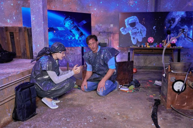 Vollmer (Hendrik Duryn) versucht Luna (Greta Bohacek) zu erklären, wie das Universum funktioniert.