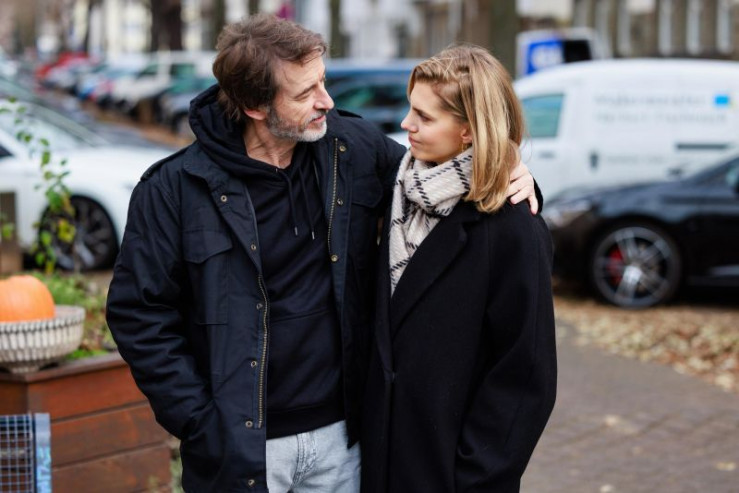 ACHTUNG SPERRFRIST! Die Veröffentlichung dieses Motives ist für alle ONLINE-MEDIEN (außer Programm-Presse) erst ab dem 02.03.2026 frei. Benedikt (Jens Hajek, M.) registriert beunruhigt einen nahen Moment zwischen Patrizia (Miriam Lahnstein) und ihrer Familie. Rechts Jori (Guido Broscheit) +++ Die Verwendung des sendungsbezogenen Materials ist nur mit dem Hinweis und Verlinkung auf RTL+ gestattet. +++