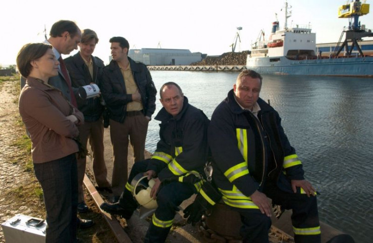 Hinzmann, Katrin und Winnie beobachten die L?scharbeiten. Von links: Olav Hinzmann (Kai Maertens), Katrin B?rensen (Claudia Schmutzler) und Winnie Scheel (Martin Brambach).Honorarfrei - nur f?r diese Sendung bei Nennung ZDF und Marc Meyerbr?ker