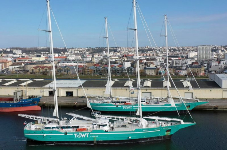 Die bislang größten modernen Frachtsegler der Welt ? die Schwesternschiffe "Anemos" und "Artemis" ? vor ihrer Beladung zur Atlantiküberquerung