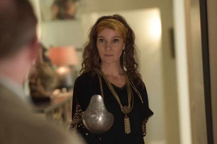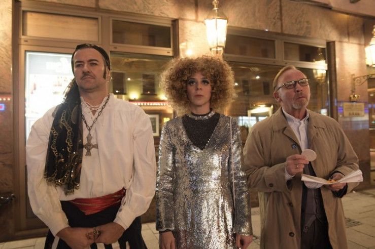 Angelika Flierl (Bernadette Heerwagen) eilt ihrem Kollegen Schaller mit einem Degen zur Hilfe und überwältigt einen gesuchten Verdächtigen.