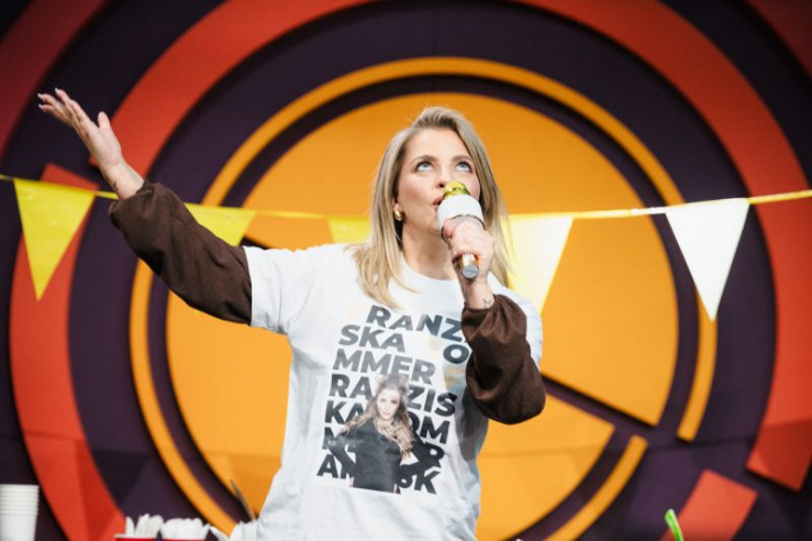 Die Ragazzi des Tages: von links nach rechts: Ulrike von der Groeben, Bausa, Laura Larsson. Vorne Sophie Passmann und Tommi Schmitt