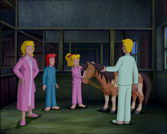 Es stibitzt Brot und Käse aus der Küche. Am Morgen zeigt es sich kurz am Frühstückstisch der Martins, um gleich darauf zusammen mit dem knuddeligen Pony zu verschwinden. Bibi und Tina spüren die beiden Ausreißer auf und erfahren von einem großen Problem.