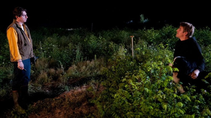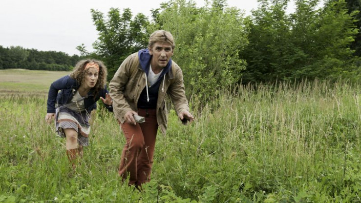 Fritz (Guido Hammesfahr) und Frida (Alessija Lause) beobachten Schmetterlinge.