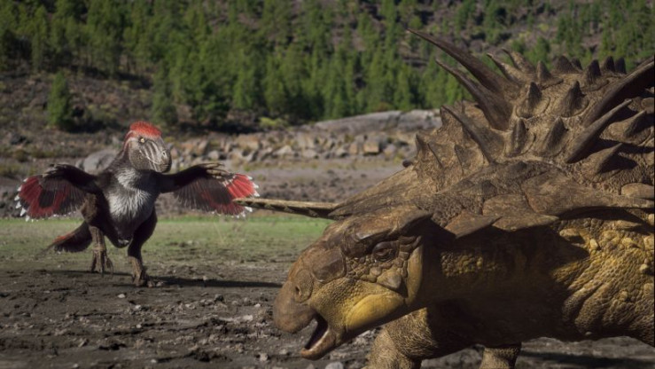 Vor 130 Millionen Jahren gehörten die Utahraptoren zu den gefährlichsten Raubtieren ihrer Zeit. So groß wie Grizzlybären waren sie schnell, intelligent und tödlich. George wappnete sich gegen diese Angreifer mit Schuppenpanzer und Keulenschwanz.