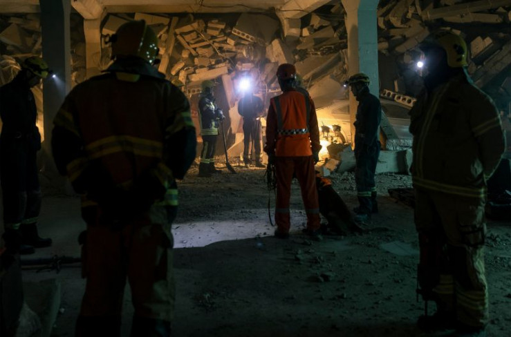 Zahlreiche Einsatzkräfte bemühen sich, über einen unterirdischen Rettungstunnel Zugang zu den Verschütteten zu schaffen.