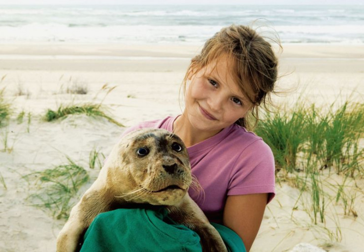 Milla (Joanna Ferkic) und der gerettete Heuler "Knopfauge". Weiteres Bildmaterial finden Sie unter www.br-foto.de.