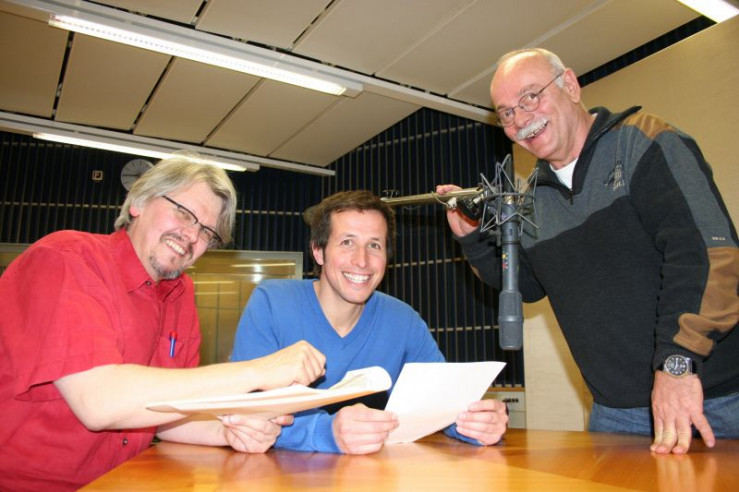 Und dann schnell runter vom Dach zur nächsten Verabredung. Quiiiiietsch! Genau so klingt eine schlecht geölte alte Tür! Und ja, so hört es sich an, wenn man durch den Wald geht - obwohl Willi auf Stroh läuft. Tontechniker und Namensvetter Willi Hauer erklärt dem Reporter, mit welchen Tricks die Geräusche für Hörspiele erzeugt werden. Und dann Augen zu und los geht das Kino im Kopf! Nebenan leiht der Schauspieler Florian Karlheim für einen Radio-Tatort gerade einem Polizisten seine Stimme und lädt Willi ein, mitzuspielen. Gerne doch!