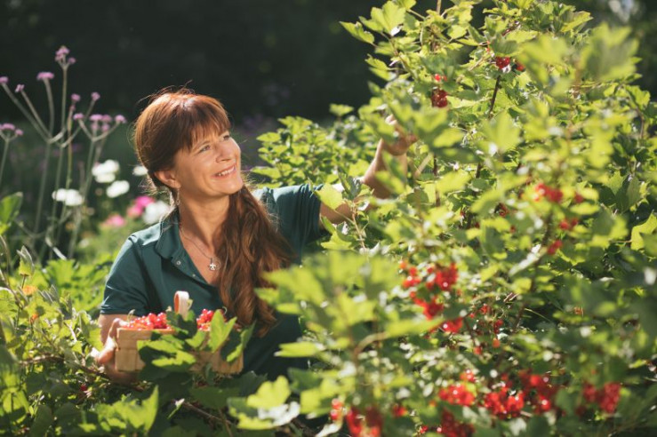Moderatorin Sabrina Nitsche bei der Johannisbeerernte.