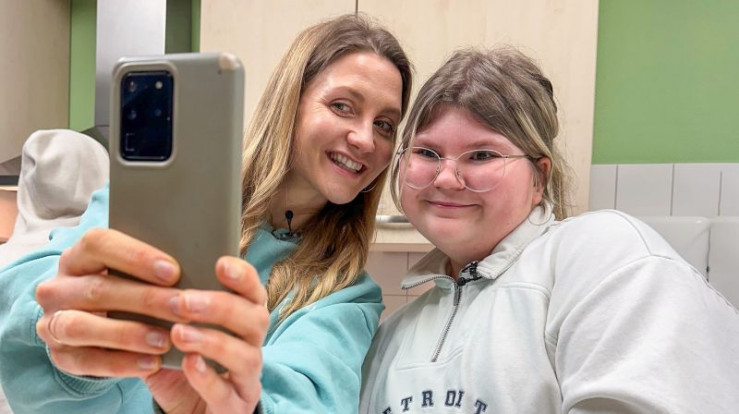 Anastasia (r) wurde wegen ihres Übergewichts in der Vergangenheit gemobbt. Hier mit Reporterin Jana.