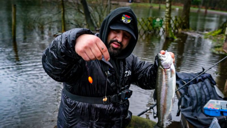 Auch wenn es regnet, können Forellen im Forellenteich gefangen werden. Melle zeigt euch, wie es funktioniert.