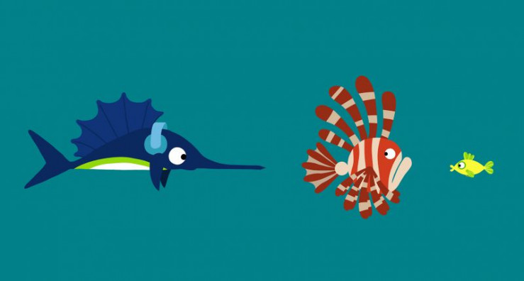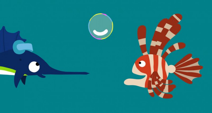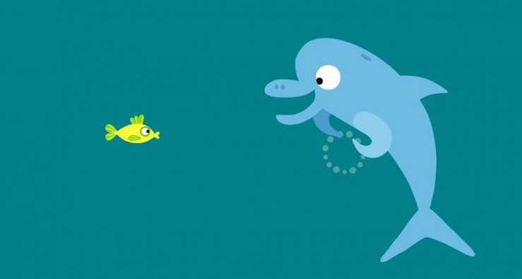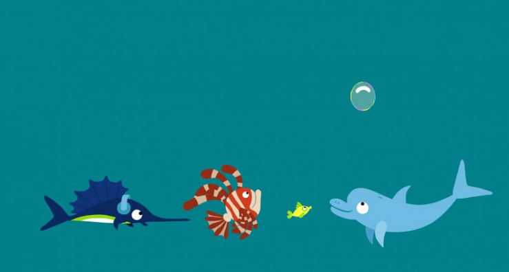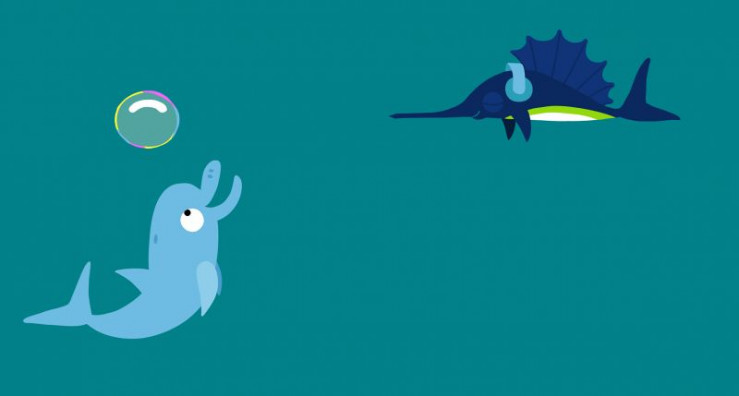 Der Delfin hat viel Spaß mit seiner schönen bunten Blase, bis ein unvorsichtiger Schwertfisch sie einfach zerpiekst.