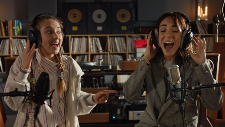Lucy (Kensington Tallman, l.) und ihre Stiefmutter (Eleonora Facchini, r.) singen gemeinsam in einem Studio.