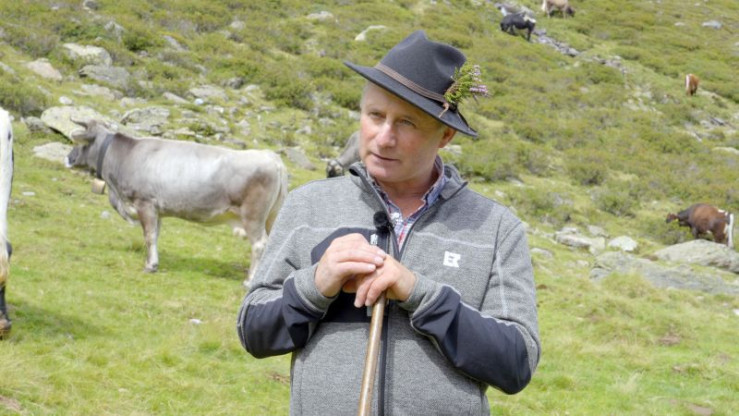 Almbauer Elmar Monz auf der Tumpenalm im vorderen Ötztal spricht über die Herausforderungen des zunehmenden Tourismus, während Almhirtin Lisa Marx auf der Karalm die gemeinschaftliche Seite des Almlebens, fernab vom Handynetz, hervorhebt.
